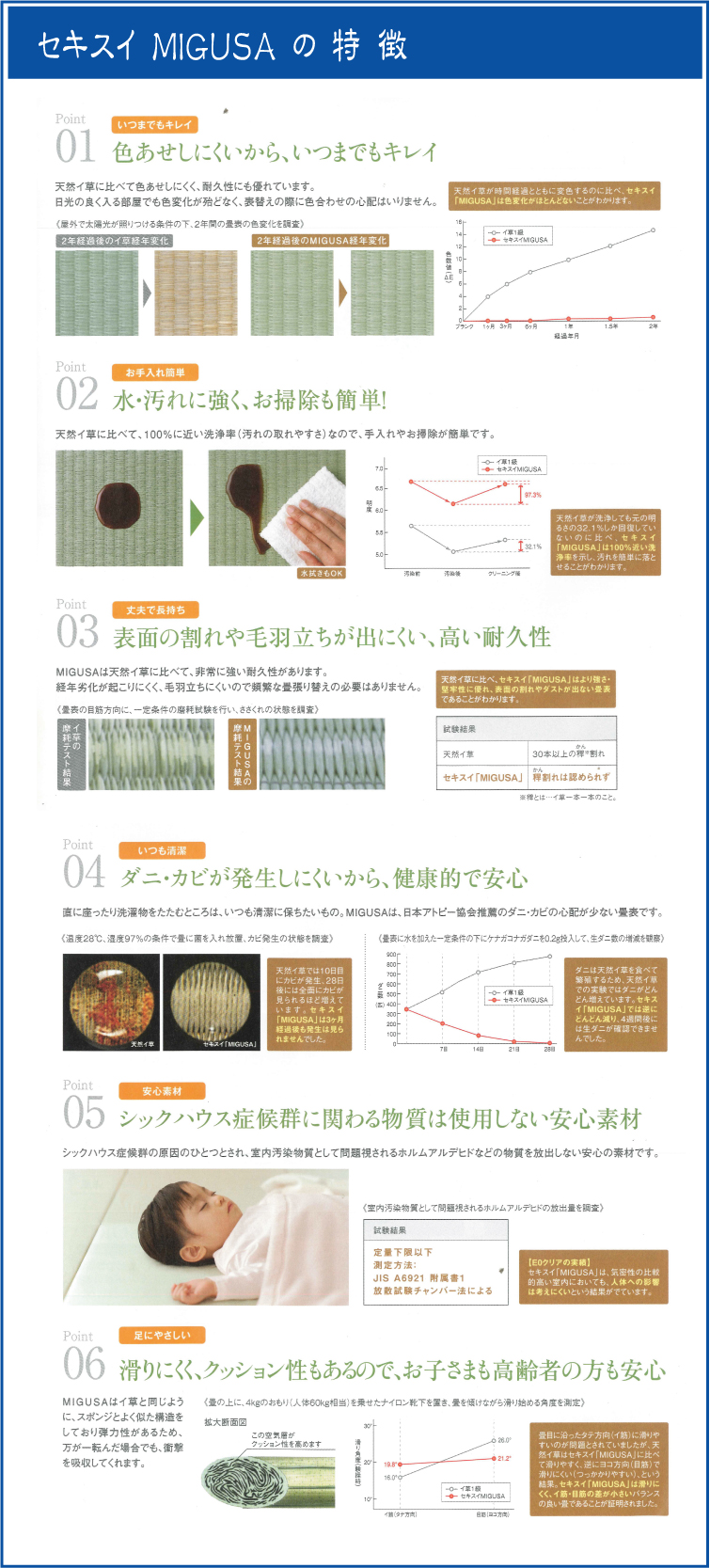 日本の建材メーカー積水成型工業(SEKISUI)が製造する、樹脂製の畳表です。